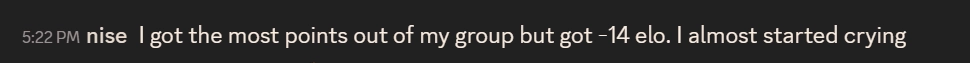 "I got the most points out of my group but got -14 ELO. I almost started crying."