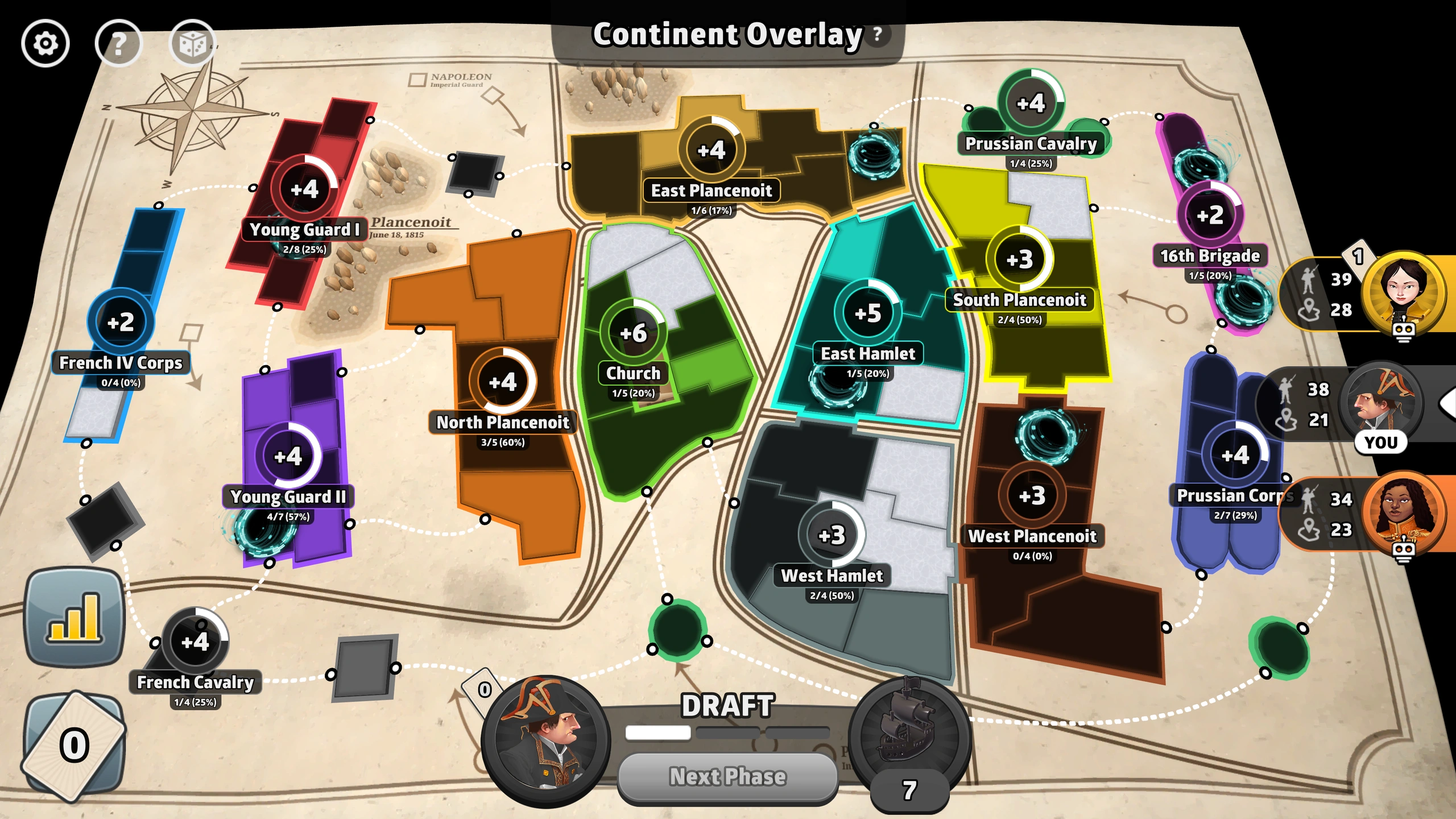 Battle for Plancenoit is a map that rewards early expansion and flexible positioning, especially under 70% Domination with progressive cards. The unstable portals create dynamic attack routes, making it easy to reposition but also opening up sudden vulnerabilities. In this featured match, I focused on securing multiple bonuses and spreading my stacks to maximize board control. However, the real lesson was in timing: with progressive cards, the window to make a winning run can close instantly. Blue capitalized on a single turn of hesitation, using the portals to sweep for 70% before I could react.