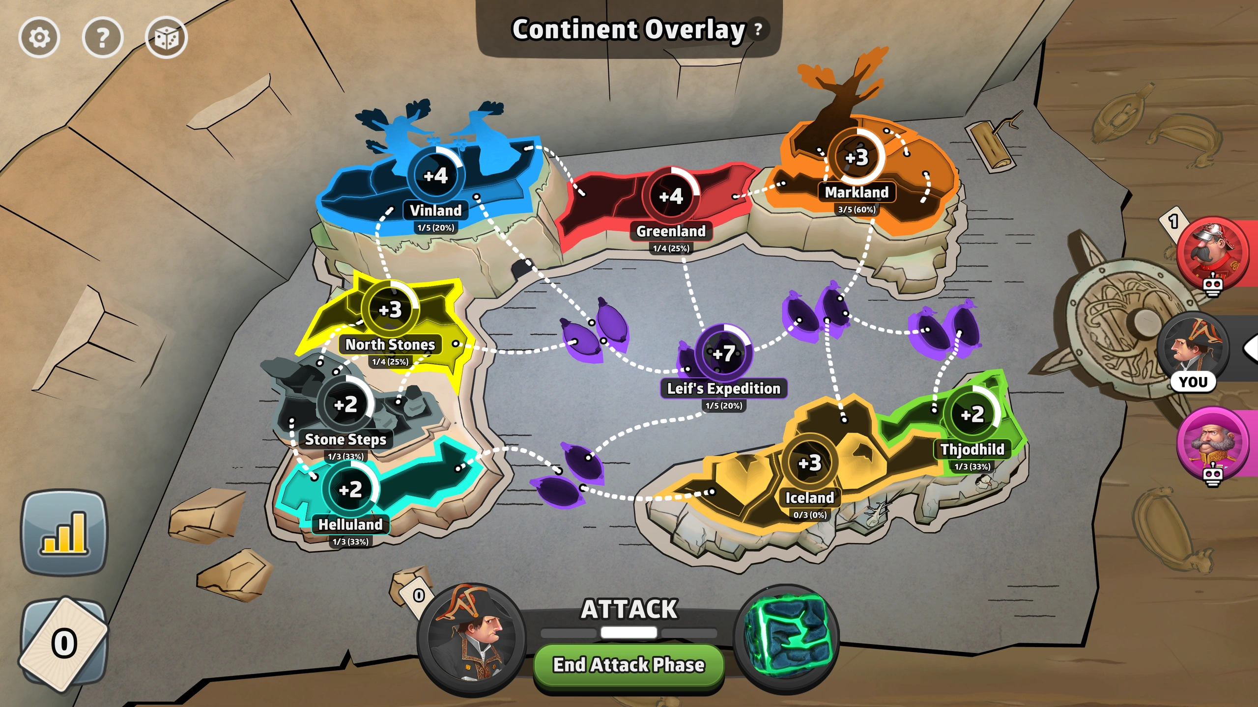 Embark on a Viking adventure with the Greenland Saga map in Risk: Global Domination. This small-sized battleground features 35 territories divided into 9 distinct regions (continents).