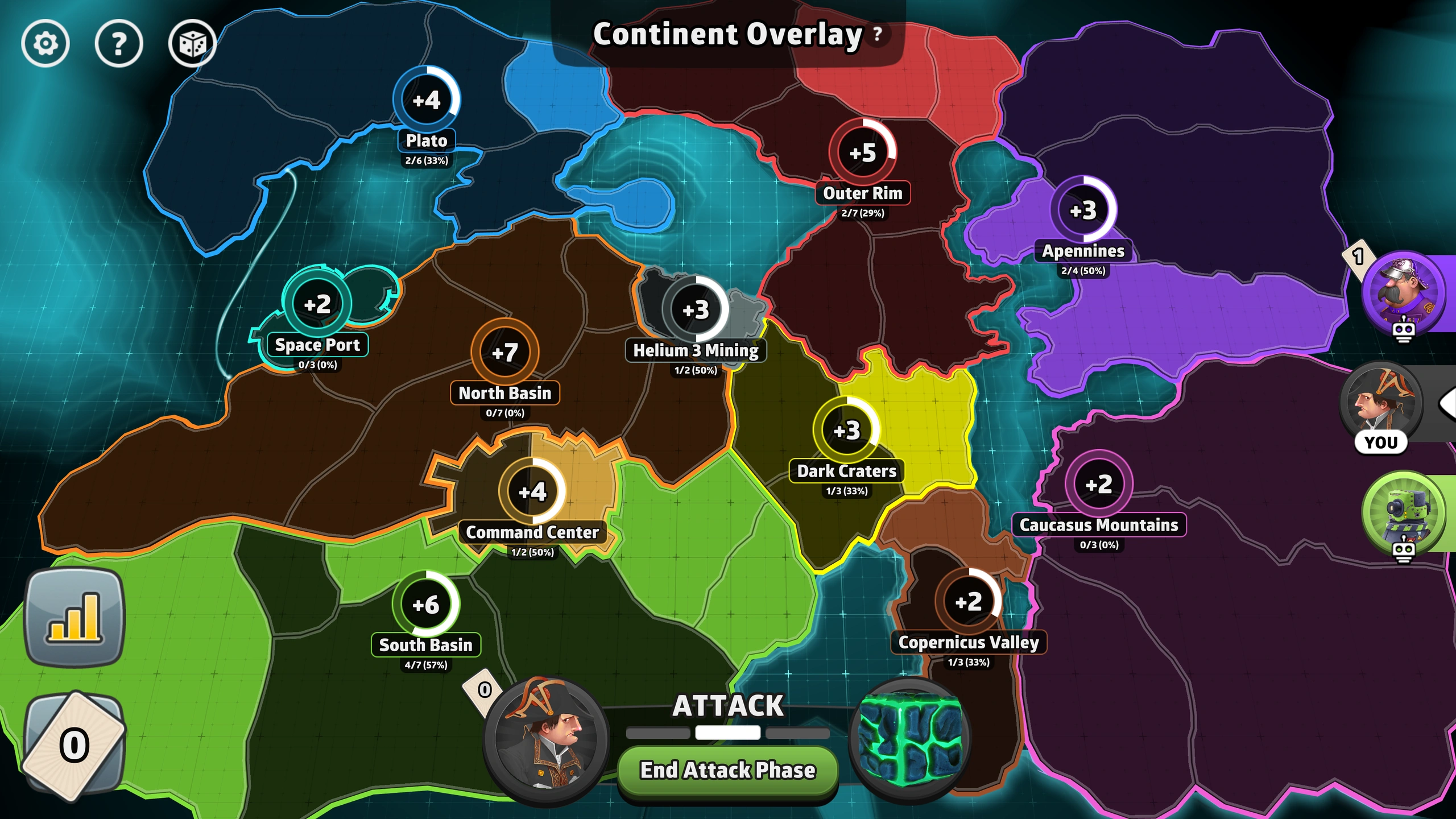 The map divides the planetoid into 11 major regions (continents), each with its own bonus troops: