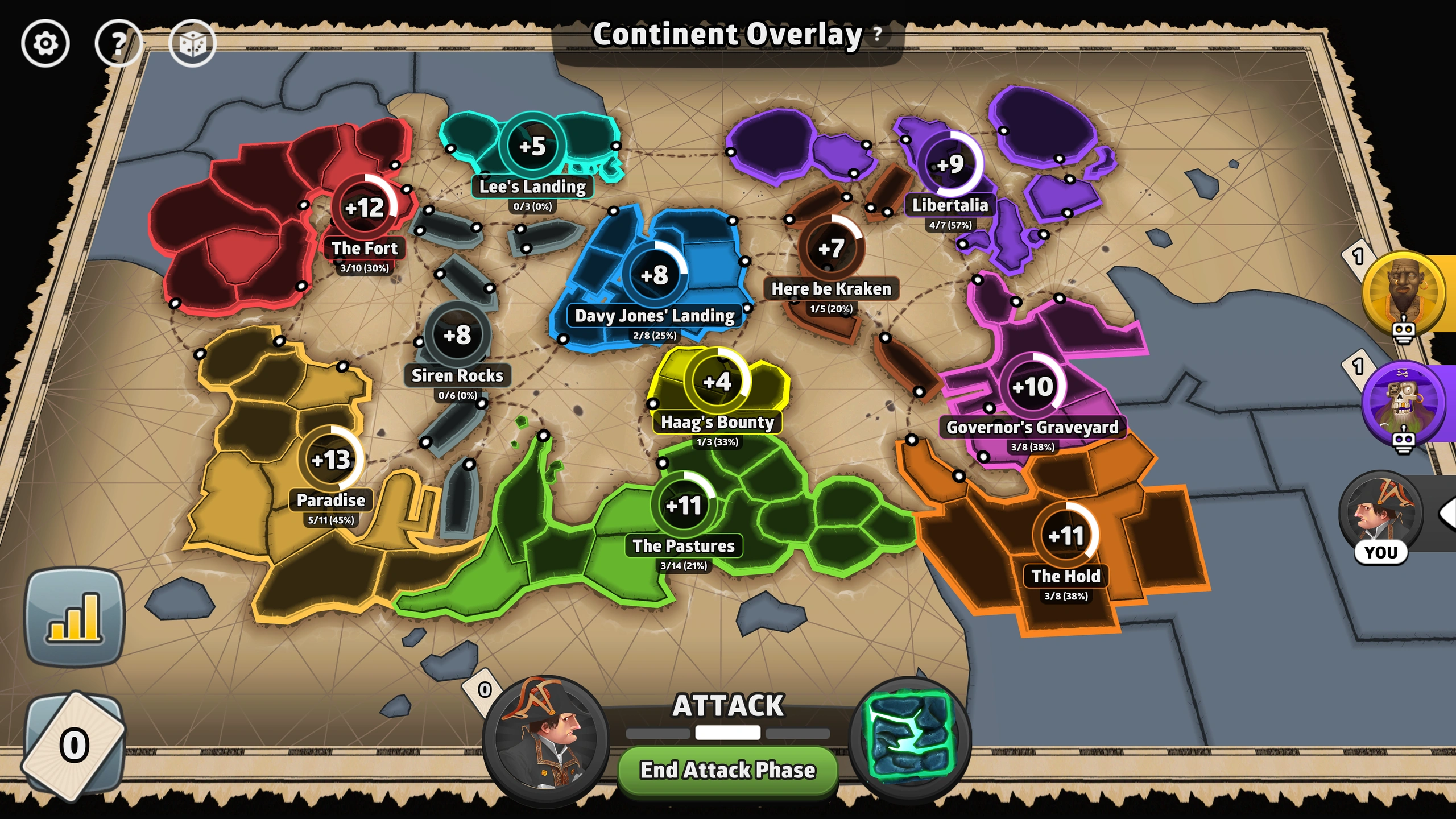 Set sail on the expansive and treacherous waters of The Pirate's Bay, one of the largest maps in Risk: Global Domination. This massive-sized map is part of the Pirate Map Pack, offering players a complex battlefield with numerous territories and strategic opportunities.