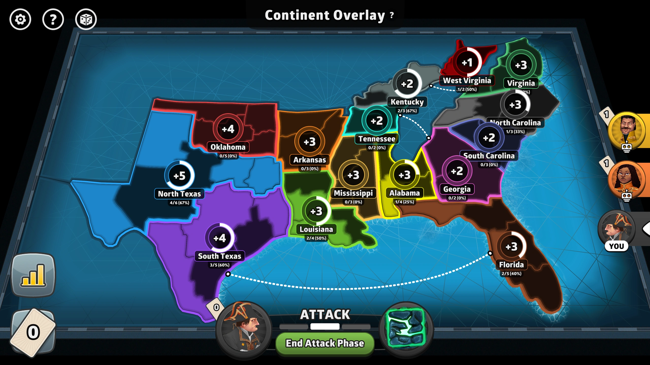 Engage in strategic battles across the US South, a captivating map in Risk: Global Domination. This medium-sized map is part of the USA Advanced Map Pack, offering players a diverse battlefield with numerous territories and strategic opportunities.